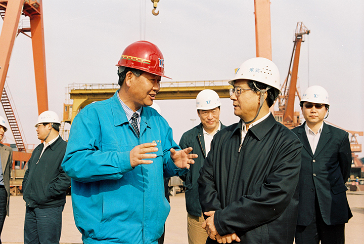2007年4月12日,浙江省委書記趙洪祝(前右一),對揚(yáng)帆集團(tuán)的跨越發(fā)展成績表示肯定,并指出,作為舟山臨港工業(yè)的一個亮點(diǎn),揚(yáng)帆集團(tuán)應(yīng)該繼續(xù)保持目前的發(fā)展勢頭以及在國內(nèi)外市場的良好聲譽(yù)和信譽(yù)。