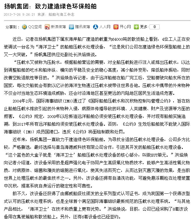 船舶與海工:揚帆集團:致力建造綠色環(huán)保船舶