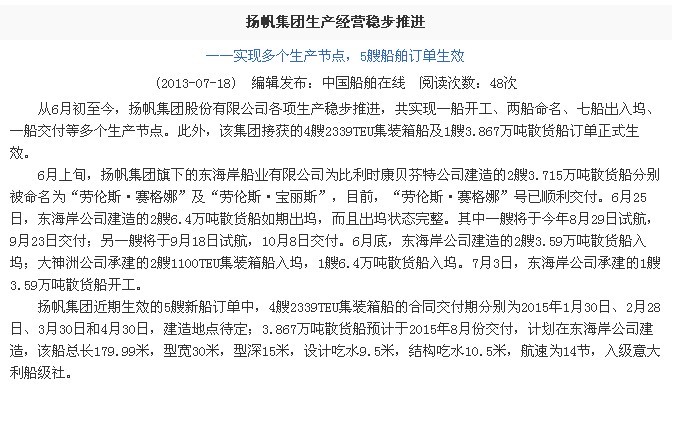 中國船舶在線:揚帆集團生產(chǎn)經(jīng)營穩(wěn)步推進